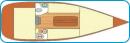 - komplet żagli: grot na pełzaczach, fok z rolerem na sztywnym sztagu, pokrowce bomowe z "Lazy Jacky'ami",sztormrelingi, bramka do opuszczania i stawiania masztu z wantami w osi obrotu, instalacja elektryczna 12V z akumulatorem, gniazdo 12V, prostownik, przedłużacz 230V - 15 m, gniazdo 230V, stacjonarny zbiornik na wodę 40L, tent na bom, komplet środków ratunkowych, gaśnica